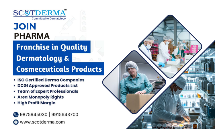 We at Scot Derma proudly lead the Top 10 Derma PCD Pharma Franchise Companies in Chhattisgarh, delivering innovative dermatology products tailored to the diverse needs of Chhattisgarh’s residents. Our extensive portfolio includes creams, lotions, face washes, serums, ointments, soaps, and scalp treatments, addressing issues like acne, psoriasis, and hair fall. Manufactured in ISO, WHO-GMP, and FDA-certified facilities, our products ensure safety and efficacy. With a franchise investment starting at just ?5,000, we offer a low-risk entry into Chhattisgarh’s booming skincare market. Whether you’re in Raipur or a smaller district like Sukma, our robust logistics and monopoly rights ensure your success. Explore our franchise opportunities.